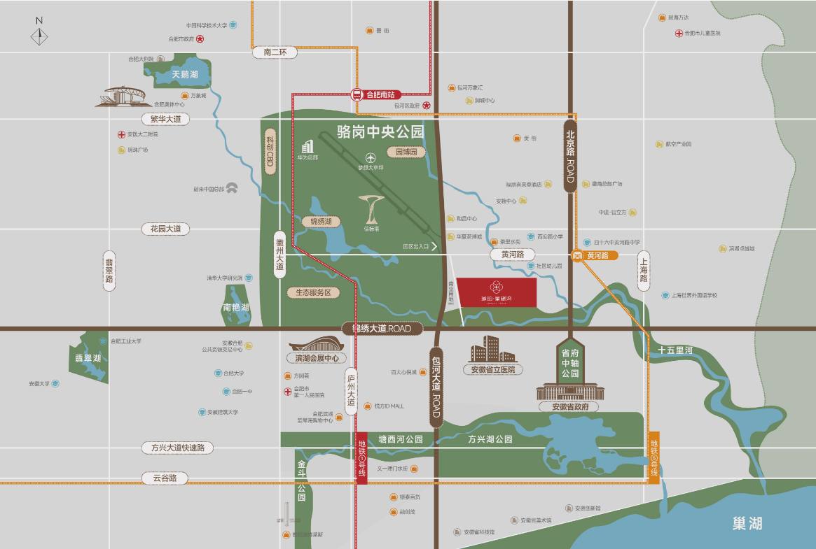 主城核心,全配套覆盖:位于包河区主城,周边地铁、商业、教育、医疗、生态配套成熟,入住即可享受便捷健康生活,无需等待 “规划落地”。